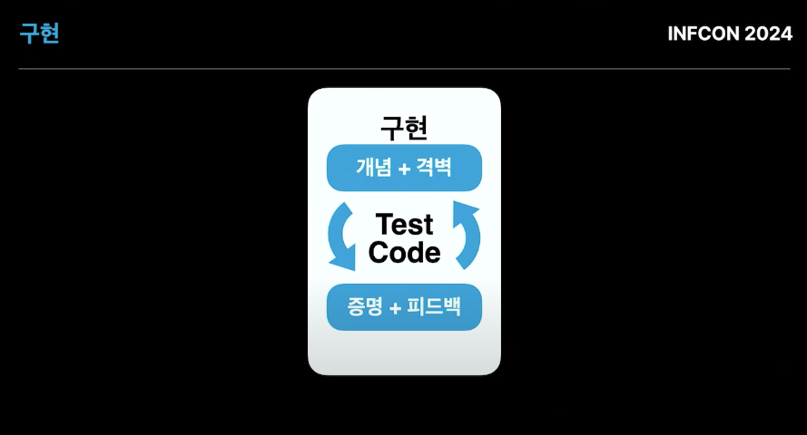 발표의 핵심은 개념과 격벽을 세워 구현을 하다 보면 완벽에 가까운 설계로 이어질 수 있다는 것입니다. 요즘 설계와 관련된 많은 책들이 출간되어 설계에 대한 관심이 높아졌고, 저 역시 궁금해서 이번 컨퍼런스 영상을 보게 되었는데, 해당 발표를 듣고 뼈 맞은 느낌이 들었습니다.