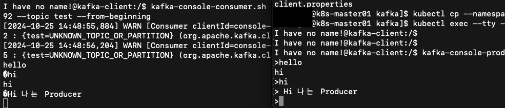 3. 두 개의 터미널을 이용해서 Producer와 Consumer 생성해 보겠습니다.