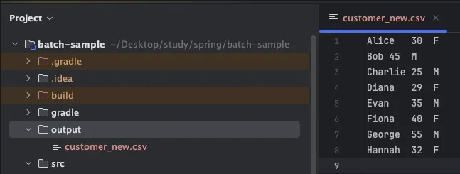 .resource(new FileSystemResource("./output/customer_new.csv")) // FlatFileItemWriter 의 이름 지정