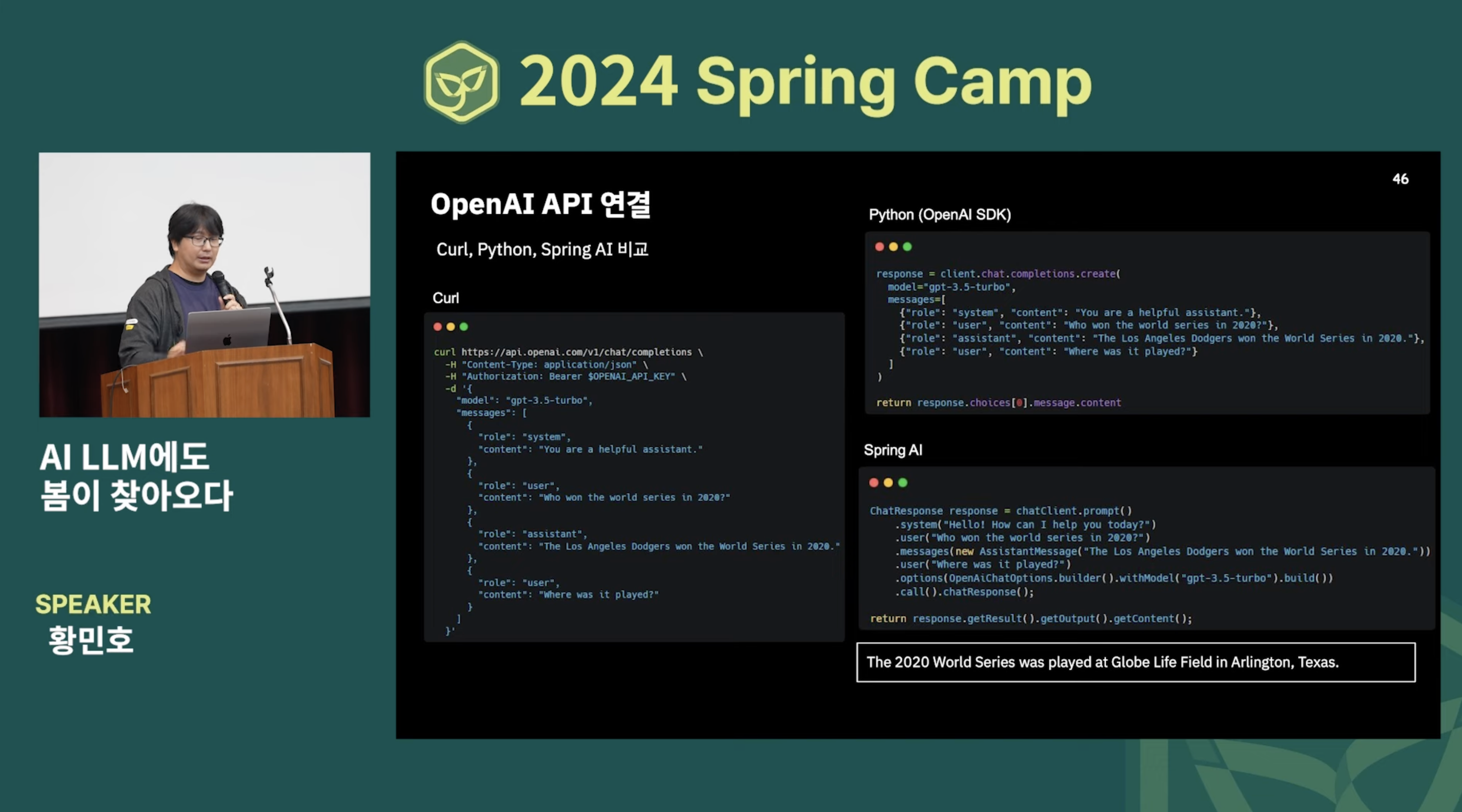 아래 글은 [스프링캠프 2024] Spring AI : LLM에도 봄이 찾아오다 (황민호)님의 발표를 듣고 정리한 글입니다.