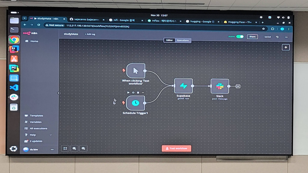 추가적으로 동억님께서 공유해주신 내용 중 특히 인상 깊었던 내용은 오픈소스 워크플로우 자동화 툴인 n8n을 활용해 인터넷 강의 진도에 대한 알람을 만드는 방법이었습니다.