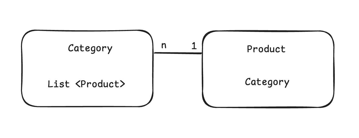 예를 들어, Category는 Product의 리스트를 가지고 있고, Product는 다시 Category를 참조하는 구조입니다.